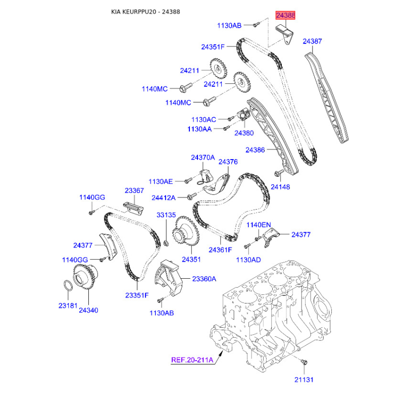 Комплект цепи привода распредвала 24388-4A100 Mobis