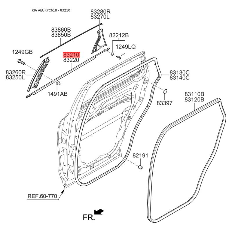 Уплотнитель (прокладка), боковое стекло левый 83210-C5000 Mobis