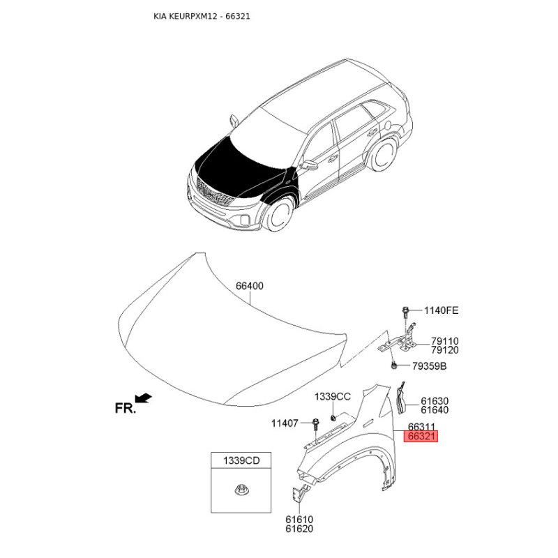 Крыло правое 66321-2P031 Mobis