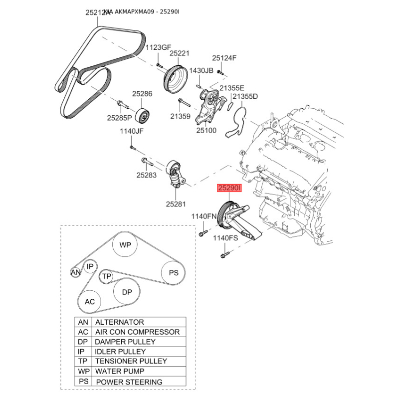 Натяжной ролик поликлинового ремня 25290-3C150 Mobis