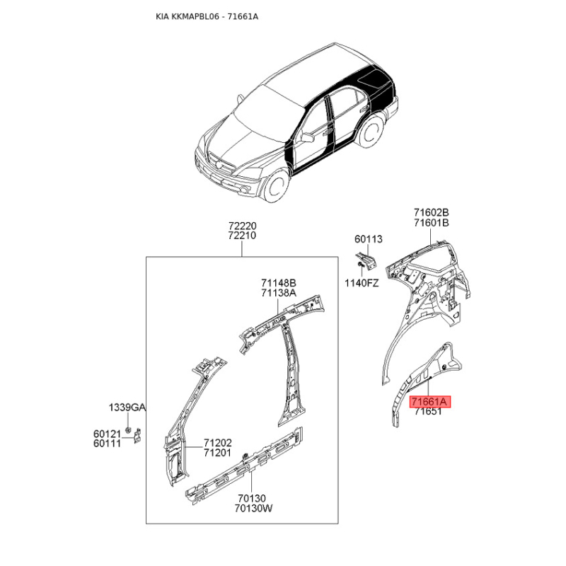 Усилитель задний боковины правый 71661-3E100 Mobis