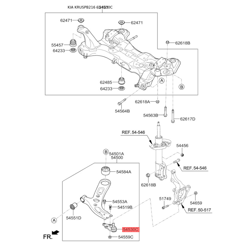 Поиск деталей можно выполнить по оригинальному коду 54530B2100.