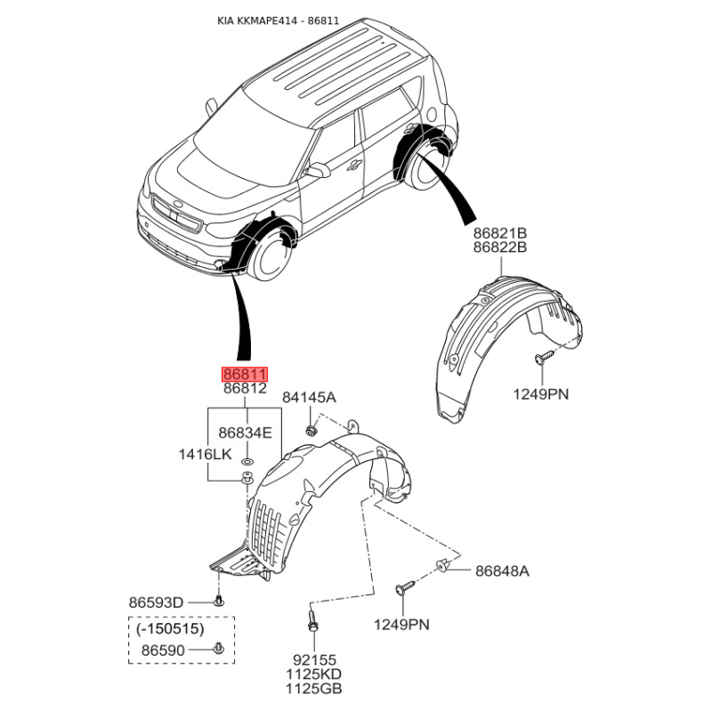 Поиск деталей можно выполнить по оригинальному коду 86811E4100.