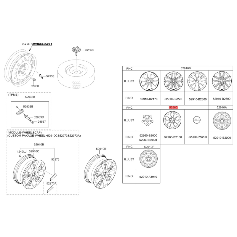 Поиск деталей можно выполнить по оригинальному коду 52960B2100.