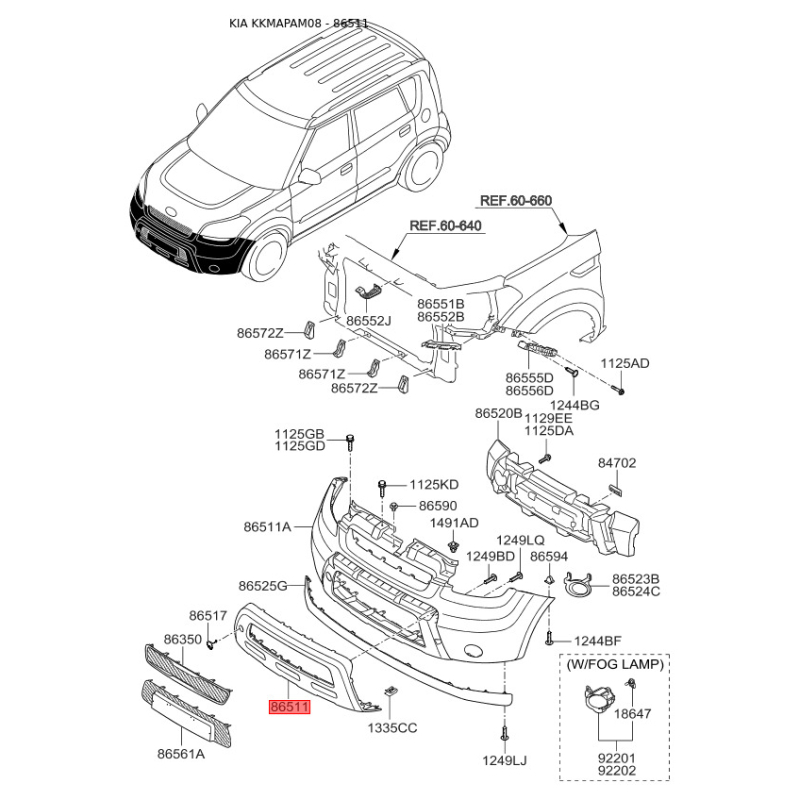 Решетка вентилятора, буфер 86512-2K050 Mobis