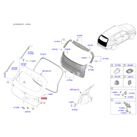 Пистон (клипса) бампера и обивки салона квадратная 14910-05000 Mobis - 1491005000 Артикул 1491005000
