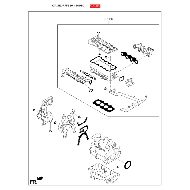 Комплект прокладок двигателя 20910-2AH04 Mobis