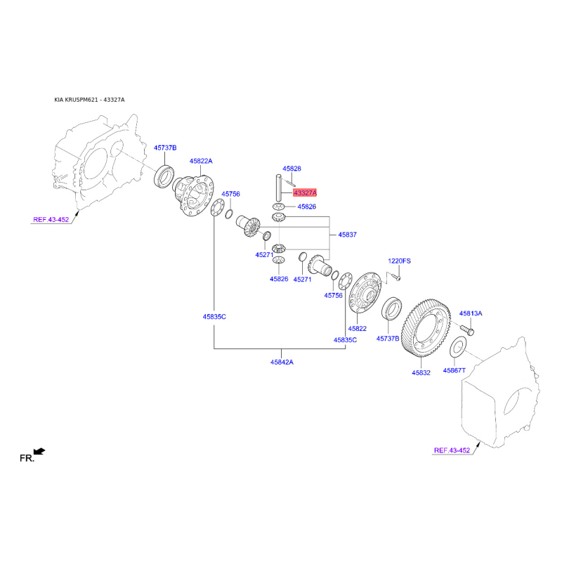 Ось (палец) сателлита дифференциала КПП 45827-37000 Mobis - 4582737000 Артикул 4582737000