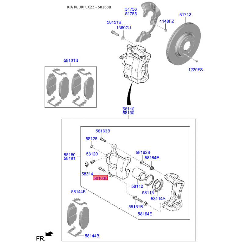Болт крепления скобы к суппорту 58163-1G000 Mobis - 581631G000 Артикул 581631G000