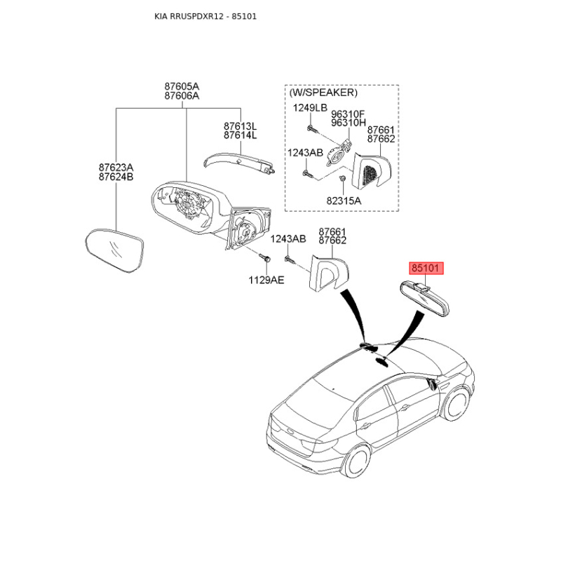 Внутреннее зеркало 85101-1M000 Mobis - 851011M000 Артикул 851011M000