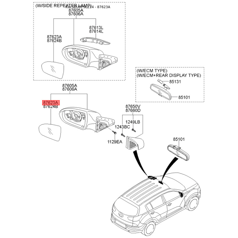 Оригинальный код 876113W350 полностью совпадает с каталожным номером производителя Mobis.
