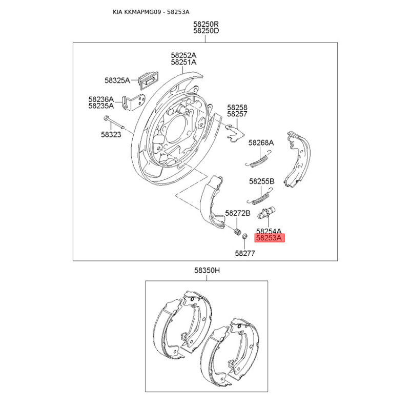 Поиск деталей можно выполнить по оригинальному коду 582532E000.