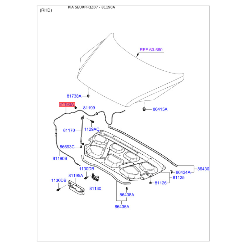Тросик замка капота 81190-1F000 Mobis