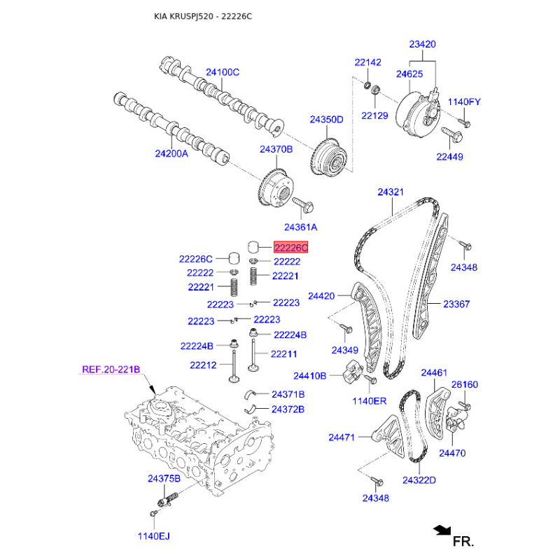 Применяемость Hyundai: Santa FE Sonata Tucson Hyundai / Santa FE: Santa FE 2 (2005-2012) Santa FE 3 (2012-2018) Hyundai / Santa FE / Santa FE 2 (2005-2012): 2.4 (16 клапанов, код двигателя G4KE) бензин, 174 л.с., внедорожник, передний привод 2.4 (16 клапанов, код двигателя G4KE) бензин, 174 л.с., внедорожник, полный привод Hyundai / Santa FE / Santa FE 3 (2012-2018): 2.4 (16 клапанов, код двигателя G4KE) бензин, 175 л.с., внедорожник, передний привод 2.4 (16 клапанов, код двигателя G4KE) бензин, 175 л.с., внедорожник, полный привод 2.4 (16 клапанов, код двигателя G4KJ) бензин, 188 л.с., внедорожник, передний привод 2.4 (16 клапанов, код двигателя G4KJ) бензин, 188 л.с., внедорожник, полный привод 2.4 (16 клапанов, код двигателя G4KJ) бензин, 192 л.с., внедорожник, передний привод 2.4 (16 клапанов, код двигателя G4KJ) бензин, 192 л.с., внедорожник, полный привод Hyundai / Sonata: Sonata 5 (2005-2010) Sonata 6 (2009-2015) Sonata 7 (2014-2019) Hyundai / Sonata / Sonata 5 (2005-2010): 2.0 (16 клапанов, код двигателя D4EA-F) дизель, 136 л.с., седан, передний привод 2.0 (16 клапанов, код двигателя D4EA-F) дизель, 140 л.с., седан, передний привод 2.0 (16 клапанов, код двигателя D4EA-F) дизель, 150 л.с., седан, передний привод 2.0 (16 клапанов, код двигателя G4KA) бензин, 144 л.с., седан, передний привод 2.0 (16 клапанов, код двигателя G4KD) бензин, 162 л.с., седан, передний привод 2.0 (16 клапанов, код двигателя G4KD) бензин, 165 л.с., седан, передний привод 2.4 (16 клапанов, код двигателя G4KC) бензин, 162 л.с., седан, передний привод 2.4 (16 клапанов, код двигателя G4KE) бензин, 174 л.с., седан, передний привод Hyundai / Sonata / Sonata 6 (2009-2015): 2.0 (16 клапанов, код двигателя G4KD) бензин, 150 л.с., седан, передний привод 2.0 (16 клапанов, код двигателя G4NA) гибрид, 150 л.с., седан, передний привод 2.4 (16 клапанов, код двигателя G4KC) бензин, 174 л.с., седан, передний привод 2.4 (16 клапанов, код двигателя G4KC) бензин, 178 л.с., седан, передний привод Hyundai / Sonata / Sonata 7 (2014-2019): 2.0 (16 клапанов, код двигателя G4KH) бензин, 245 л.с., седан, передний привод 2.0 (16 клапанов, код двигателя G4ND) бензин, 163 л.с., седан, передний привод 2.0 (16 клапанов, код двигателя G4ND) бензин, 169 л.с., седан, передний привод 2.4 (16 клапанов, код двигателя G4KE) бензин, 171 л.с., седан, передний привод 2.4 (16 клапанов, код двигателя G4KE) бензин, 178 л.с., седан, передний привод 2.4 (16 клапанов, код двигателя G4KJ) бензин, 188 л.с., седан, передний привод 2.4 (16 клапанов, код двигателя G4KJ) бензин, 193 л.с., седан, передний привод Hyundai / Tucson: Tucson 2 / ix35 (2010-2015) Tucson 3 (2015-2021) Hyundai / Tucson / Tucson 2 / ix35 (2010-2015): 2.0 (16 клапанов, код двигателя G4KD) бензин, 150 л.с., внедорожник, передний привод 2.0 (16 клапанов, код двигателя G4KD) бензин, 150 л.с., внедорожник, полный привод 2.0 (16 клапанов, код двигателя G4KD) бензин, 163 л.с., внедорожник, передний привод 2.0 (16 клапанов, код двигателя G4KD) бензин, 163 л.с., внедорожник, полный привод 2.4 (16 клапанов, код двигателя G4KE) бензин, 174 л.с., внедорожник, полный привод Hyundai / Tucson / Tucson 3 (2015-2021): 2.4 (16 клапанов, код двигателя G4KJ) бензин, 184 л.с., внедорожник, передний привод 2.4 (16 клапанов, код двигателя G4KJ) бензин, 184 л.с., внедорожник, полный привод Kia: Carens Cerato Optima Magentis Sorento Sportage Kia / Carens: Carens 2 (2006-2012) Kia / Carens / Carens 2 (2006-2012): 2.0 (16 клапанов, код двигателя G4KA) бензин, 144 л.с., минивэн, передний привод Kia / Cerato: Cerato 2 (2008-2013) Kia / Cerato / Cerato 2 (2008-2013): 2.0 (16 клапанов, код двигателя G4KD) бензин, 156 л.с., купе, передний привод 2.0 (16 клапанов, код двигателя G4KD) бензин, 156 л.с., седан, передний привод Kia / Optima Magentis: Magentis 2 (2005-2010) Optima 3 (2010-2015) Optima 4 (2015-2020) Kia / Optima Magentis / Magentis 2 (2005-2010): 2.0 (16 клапанов, код двигателя G4KA) бензин, 144 л.с., седан, передний привод 2.0 (16 клапанов, код двигателя G4KD) бензин, 165 л.с., седан, передний привод Kia / Optima Magentis /
