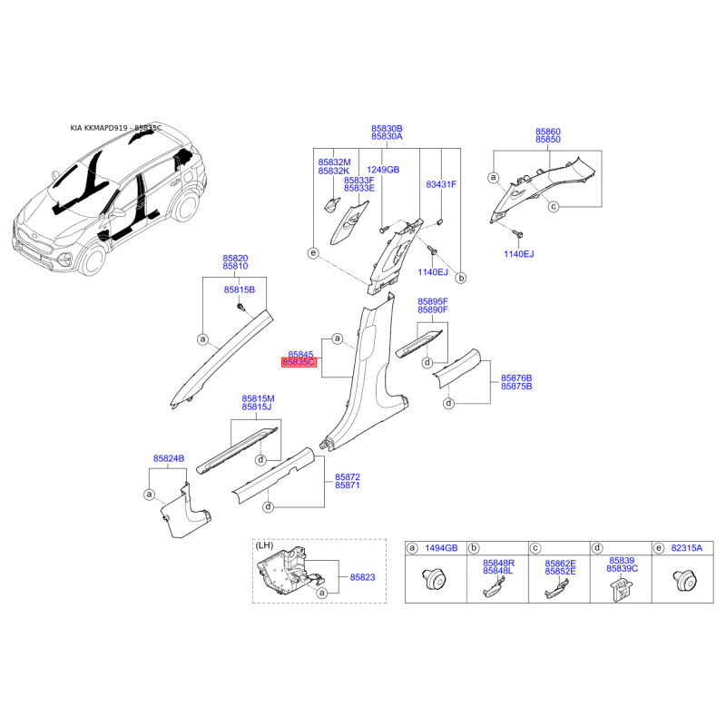 Поиск деталей можно выполнить по оригинальному коду 85835D9500WK.