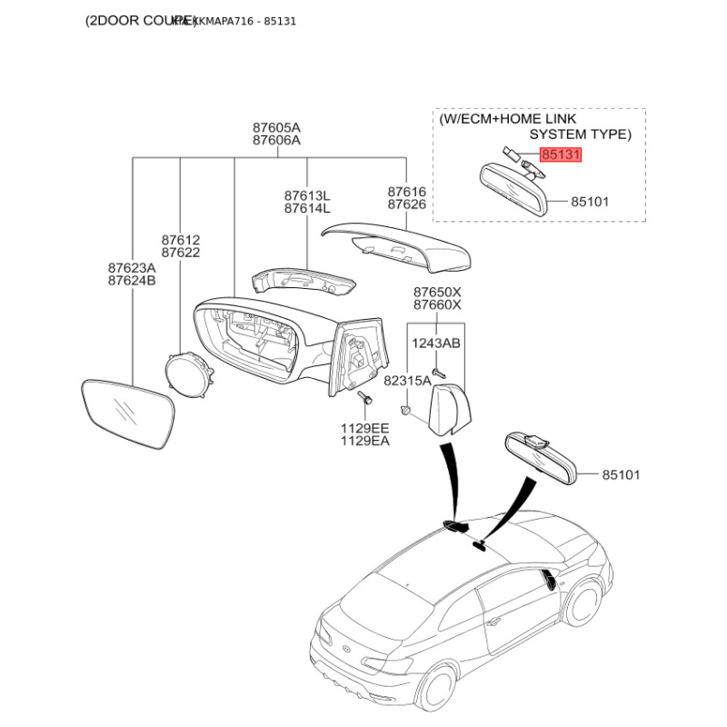 Заглушка (крышка), корпус - внешнее зеркало 85130-2G000 Mobis - 851302G000 Артикул 851302G000
