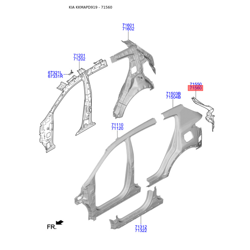 Поиск деталей можно выполнить по оригинальному коду 71560D9000.