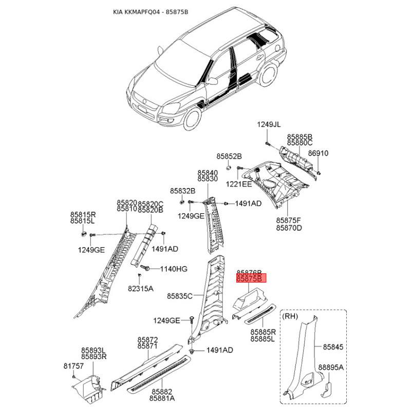 Поиск деталей можно выполнить по оригинальному коду 858821F000EZ.