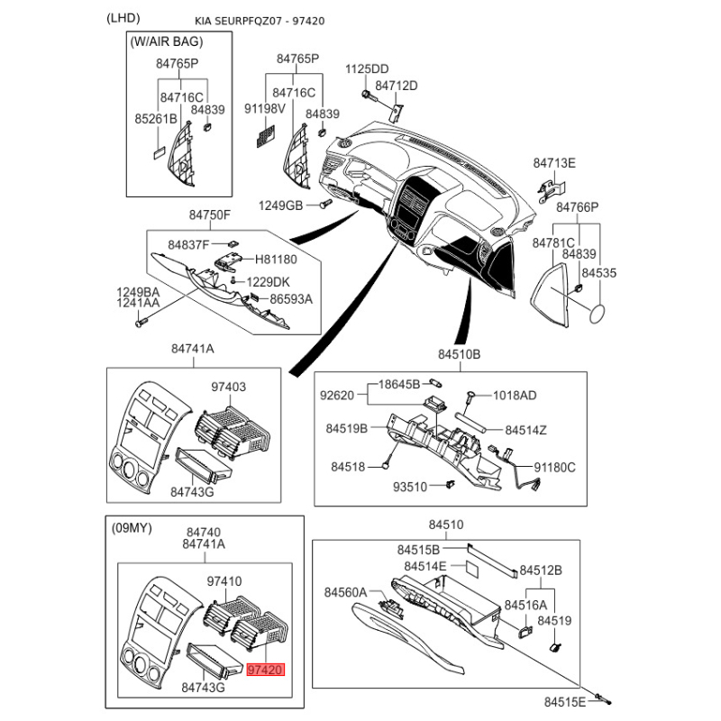 При получении заказа проверяйте комплектацию товара Решётка панели приборов (торпеды) правая 97420-1F500 Mobis.