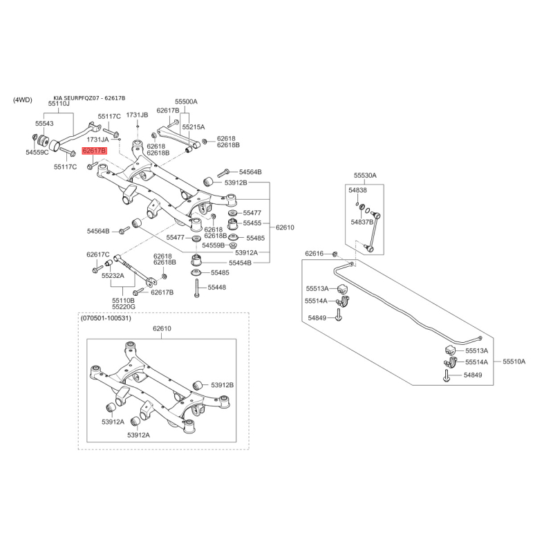 Поиск деталей можно выполнить по оригинальному коду 626172E100.