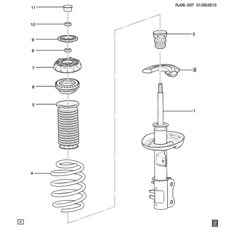 Устанавливается под переднеюю пружины, снизу. Подходит только на Шевроле Trax (Tracker) 3-го поколения (с 2013 по 2019 год) и Опель Мокка (Opel Mokka, Mokka X) 1-го поколения (с 2012 по 2021 год). Производитель General Motors, Корея. Номер 2 на скриншоте с каталога.