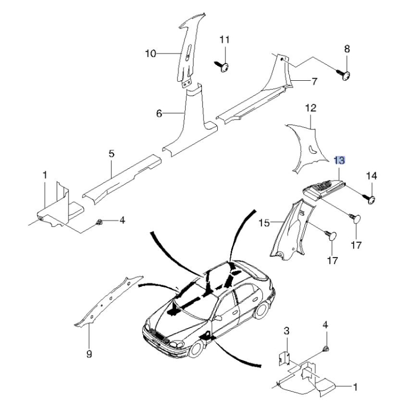 Наставка обивки боковины Ланос Сенс хэтчбек правая ЗАЗ