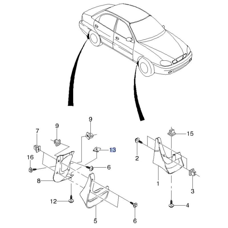 Цена за 1 шт. Только пластина, без самореза. Крепит грязезащитный щиток бампера и прокладку заднего брызговика (номер 13 на схеме из каталога). Подходит на Ланос, Авео, Эпика, Леганза, Матиз, Нубира, Такума, Каптива.