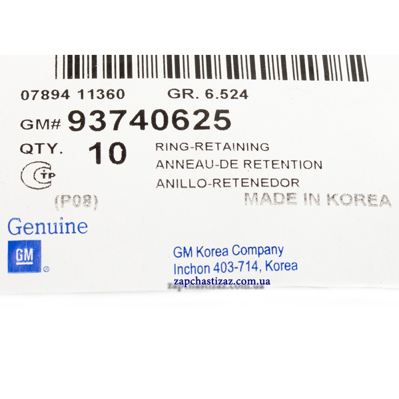 Оригинальный код 93740625 полностью совпадает с каталожным номером производителя GM.