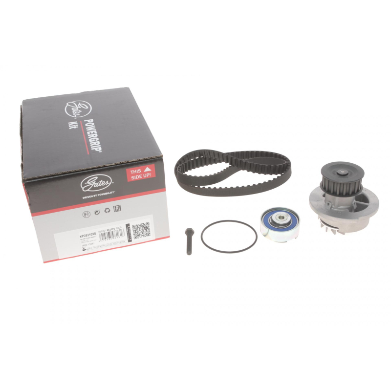 В комплект входит ролик ГРМ, ремень ГРМ, помпа (насос водяной), прокладка помпы и болт. Производитель Gates.
