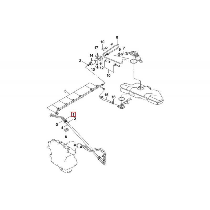Трубка соединяет топливный фильтр и трубку подачи топлива на рампу. Название по каталогу - трубка подающая топливная (на схеме под номером 1). Для всех Нексий независимо от объёма и года выпуска.